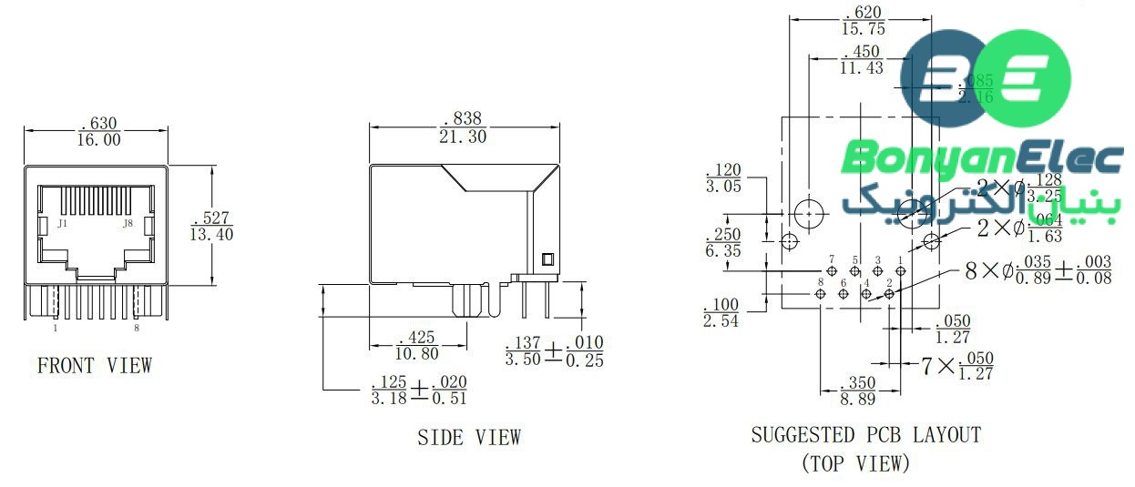 - فاصله بین پایهها: 0.1 اینچ (2.54 میلیمتر)